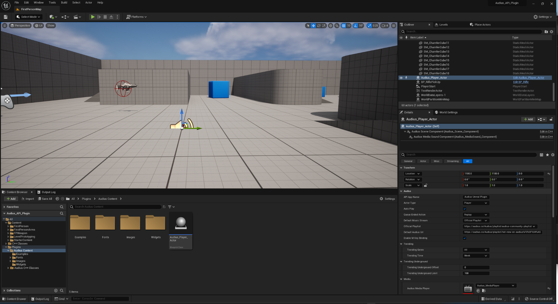 Add "Audius" to the PublicDependencyModuleNames in your _project_.Build.cs