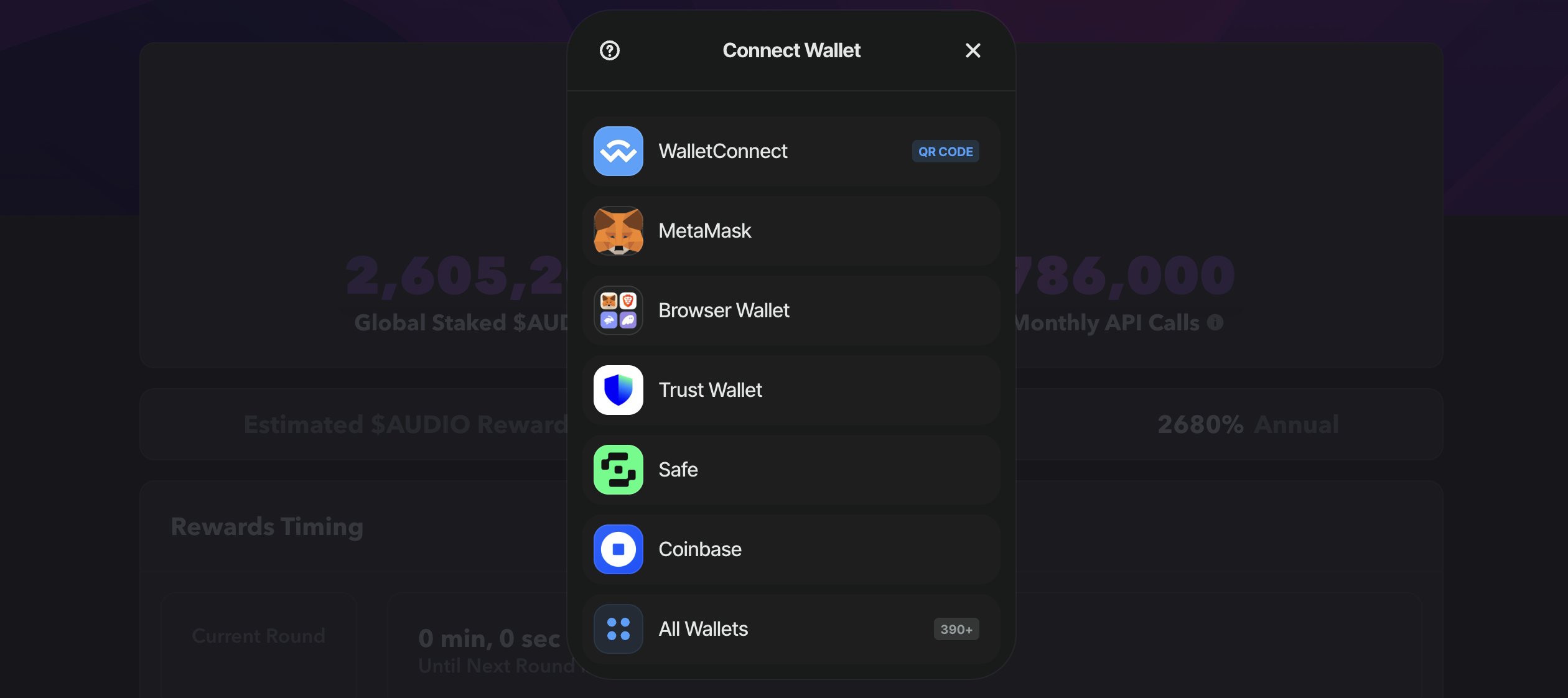 - Select your web3 wallet in the wallet selection modal and sign in.